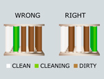 要調(diào)整的脈沖順序,以確保被清灰的濾芯不會(huì)被相鄰的濾袋清灰粉塵所污染。錯(cuò)開的清灰次序,有助于減少二次揚(yáng)塵。 |