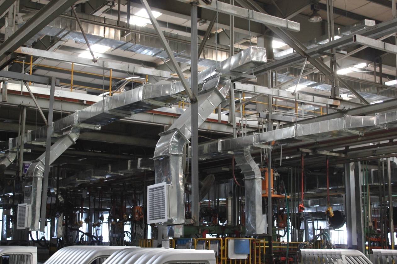 整體廠房通風(fēng)系統(tǒng)不僅能有效調(diào)節(jié)設(shè)定范圍內(nèi)的空氣溫度濕度,還能通過(guò)氣流的運(yùn)動(dòng),將工作區(qū)域內(nèi)產(chǎn)生的煙塵、粉塵向廠房上部,使廠房設(shè)定高度范圍內(nèi)的空氣得到治理。